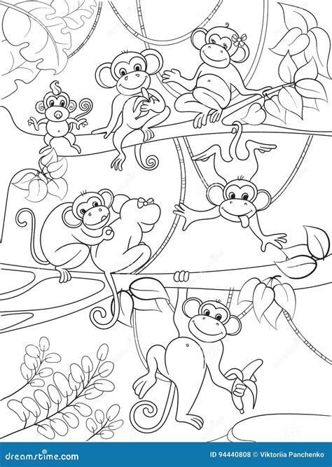 Web ready to print monkey in tree outline coloring page coloring page for coloring at home or school. Vector illustration of cartoon monkey outline coloring. Whether you’re a budding artist, a parent seeking creative or educational activities for your children, or.