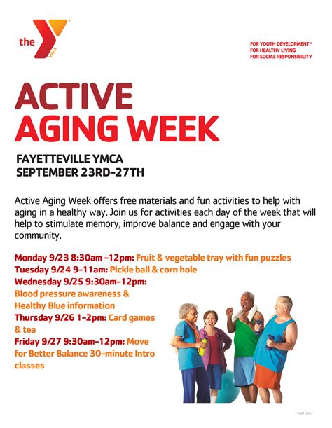 Active Aging Week Activity Ideas. The list of specific activities below includes ideas for reaching members of your target audience through the places they shop, work, worship, socialize, obtain health care, and access. Check out this post for suggestions to help your residents celebrate positive aging.